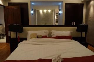 这就是主人房~床是对着游泳池的~