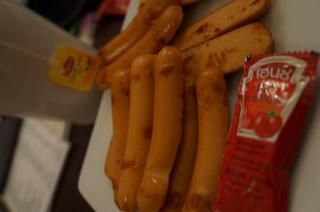 差不多九点多十点,爸和姐就干脆煮了下午买的香肠来吃~